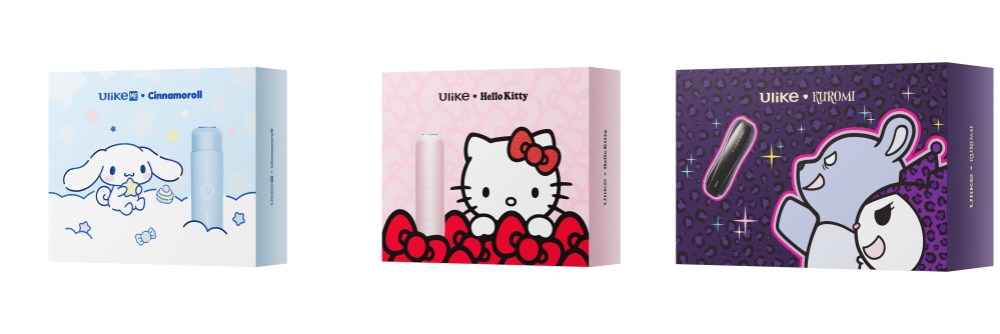 Hello Kitty、大耳狗及酷洛米三位广受欢迎的角色将分别与Ulike三款明星产品相结合,推出定制联名产品礼盒:Hello Kitty×Ulike Air4主打温和高效,延续Kitty一贯的温暖治愈风格;大耳狗×UlikeMe则以轻盈便携为特色,契合年轻群体多元生活场景;酷洛米×Ulike Pro10则主打高性能与科技质感,满足更深层次的护肤需求。每款产品礼盒配置深度融合IP元素的周边,在保证脱毛科技效能的同时,赋予产品更多情感与收藏价值。