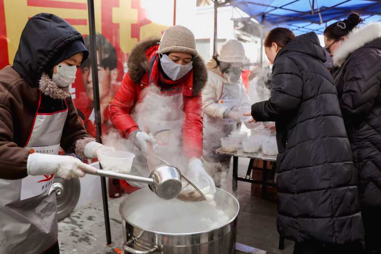 当日,工会驿站同步升级为“暖心服务站”,工会干部与志愿者为外卖送餐员、快递员、环卫工人等新就业形态劳动者及户外劳动者端上热气腾腾的饺子。