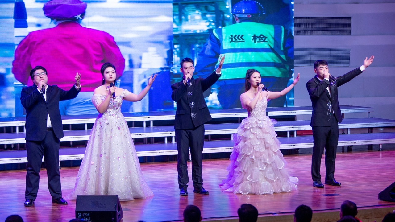 在《迎宾曲》的欢快旋律中,音乐会拉开帷幕。《花开新时代》《阳光路上》《春风十万里》等歌曲以昂扬基调展现劳动者对美好生活的向往;原创音乐快板《产业工人有力量》通过快节奏的韵律与工业风舞蹈,生动诠释新时代产业工人的硬核担当;原创情景朗诵《永不褪色的大衣》,以光影为笔,绘就焦裕禄精神的时代画卷;职工合唱团演绎的《彩云追月》《菊花台》《世界赠予我的》等经典曲目,以跨界改编碰撞出艺术火花,赢得现场阵阵掌声。现场高潮迭起,歌曲串烧《无名的人》唱出平凡劳动者心声,互动访谈邀请全国劳动模范冯忠奎、全国五一劳动奖章获得者姚海涛、齐鲁工匠胡鹏昌、山东省道德模范李永娟陆续登上舞台,以《榜样》为题讲述奋斗故事。从攻克技术难关的创新突破,到扎根生产一线的默默坚守,一个个鲜活案例诠释着“劳动最光荣”的深刻内涵。当《歌唱祖国》的旋律响起时,全场观众挥舞国旗齐声高唱,将音乐会推向最高潮。