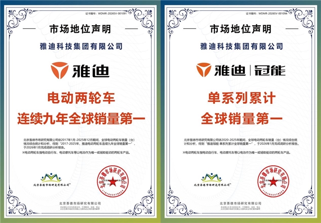 雅迪在嘉年华上提出的“智能平权”概念,背后有着清晰的产业逻辑支撑:一方面,雅迪连续九年全球销量第一,累计收获超一亿用户选择,截至2025年底,雅迪冠能系列累计销量突破2000万台,荣获“单系列累计全球销量第一”权威认证——深厚的市场基础,使雅迪有能力将前沿技术下沉至国民级产品;另一方面,过去6年累计研发投入超过60亿元,拥有2000多项专利,以及4大CNAS国家级实验室、6家技术研发中心和全球十大智能产研基地,构建起从底层技术到应用方案的完整智能研发体系,为“智能平权”提供了充分的技术底气。