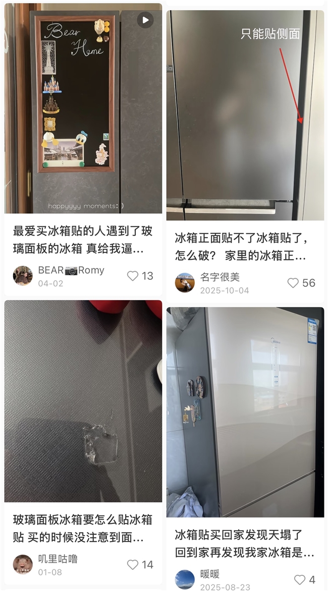 一枚方寸大小的冰箱贴,本是厨房里的灵动点缀,如今却让亿万网友犯了难。在社交平台上,文创冰箱贴、DIY冰箱贴的热度居高不下,年轻人乐此不疲地收集。与此同时,一个现实问题也反复被提及:“玻璃面板冰箱怎么贴冰箱贴?”,相关话题阅读量甚至突破了4.1亿次。