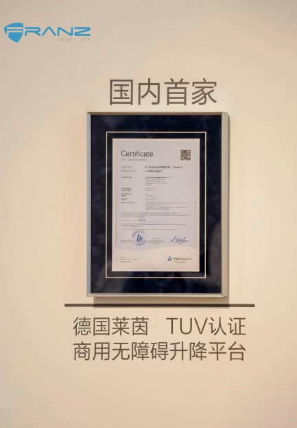 从技术性看,2024年11月,弗朗茨成为国内同行业首家获得德国莱茵TÜV认证的企业。2025年在中国(成都)国际电梯展览会上,其FP-S商用平台梯进一步获得TÜV莱茵颁发的机械指令EC Type-examination认证证书。TÜV莱茵大中华区工业服务与信息安全副总经理赵文科评价:“弗朗茨从零部件溯源到整机性能的安全管理体系,给我留下了深刻印象……安全质量不是标准,而是底线。”