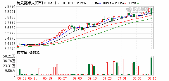 8月15日,人民币兑美元在岸、离岸即期汇率均突破6.9。近期以来,人民币兑美元中间价首次突破6.8是在7月25日,此后数个交易日陆续再次突破6.8。