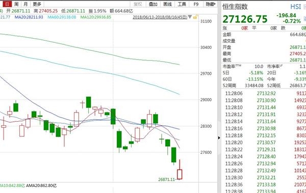 腾讯在恒生指数中的权重约10%,其股价大跌也连带恒生指数盘中一度失守27000点,创出最近一年新低。