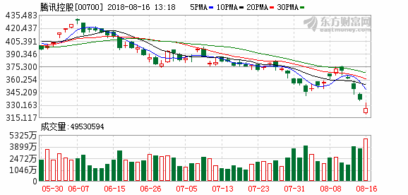 受此影响,腾讯控股今天开盘即跳空下跌近5%,盘中跌破320港元,股价创出近一年的新低。