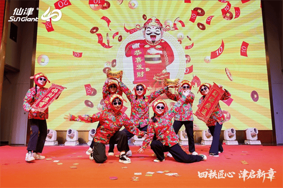 晚会尾声,饮料事业部全员登台合唱——仙津四十周年改编版《光辉岁月》。“风雨兼程至今四十年,迎接光辉岁月,新章再起共前行”,歌声铿锵有力,承载奋斗时光。那些攻坚克难的日夜、携手共赢的瞬间、匠心如一的坚守正是仙津精神的核心所在。