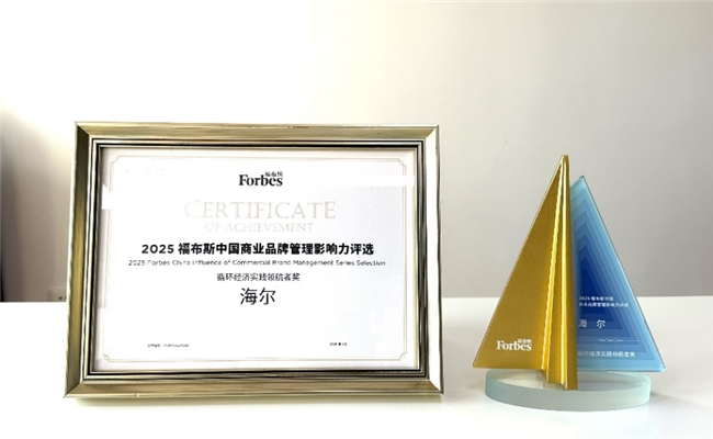1月28日,2025福布斯中国商业品牌管理影响力评选结果正式公布。其中,海尔智家凭借成熟完善的家电再循环体系,为行业树立了可持续发展的标杆,荣获“循环经济实践领航者奖”,成为家电行业唯一获此殊荣的企业。