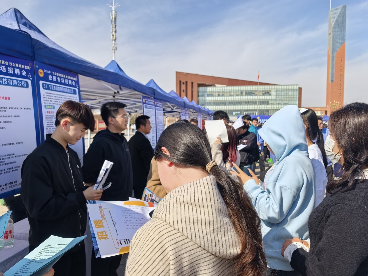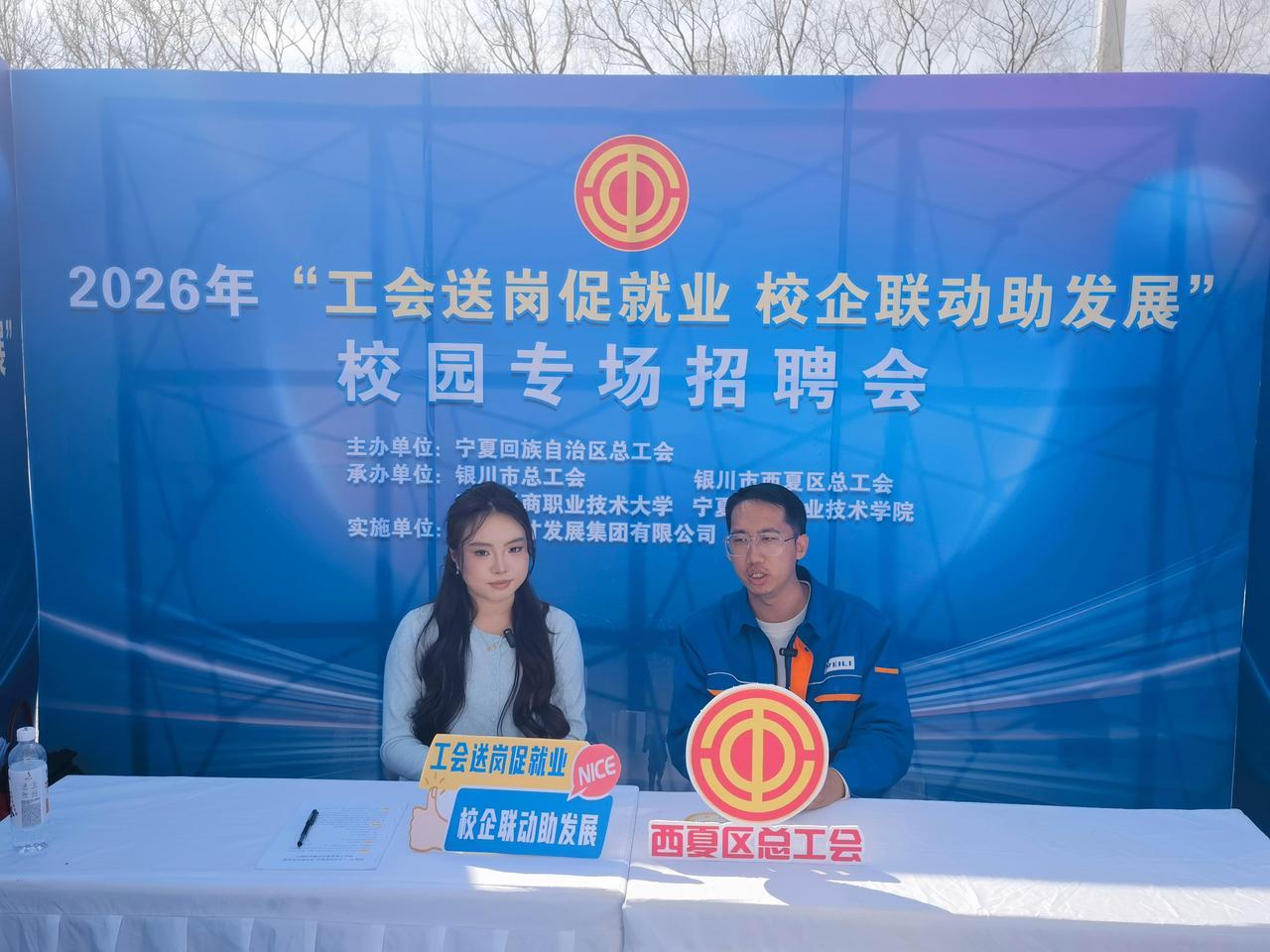 3月11日,由宁夏回族自治区总工会主办,银川市总工会、银川市西夏区总工会等多家单位承办的“工会送岗促就业 校企联动助发展”校园专场招聘会在宁夏工商职业技术大学举行。