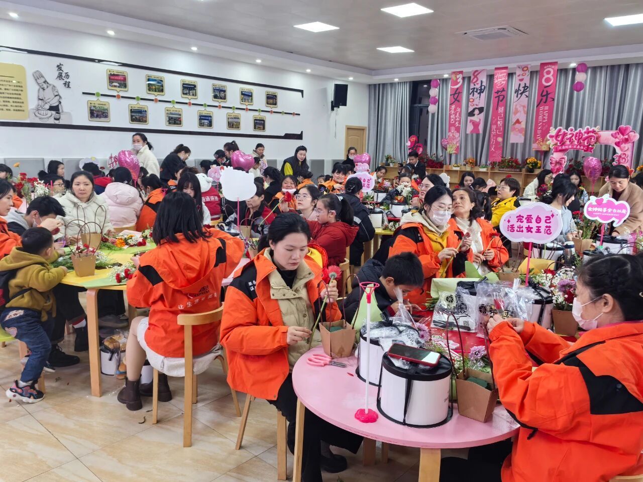 近日,江西省抚州市总工会举办了“‘新’花怒放·‘焙’感幸福”关爱新就业形态女职工亲子主题活动。来自外卖配送、快递物流、网络直播等行业的100余名新就业形态女职工代表携子女欢聚一堂,在花香与甜蜜中,共同迎接属于自己的节日。