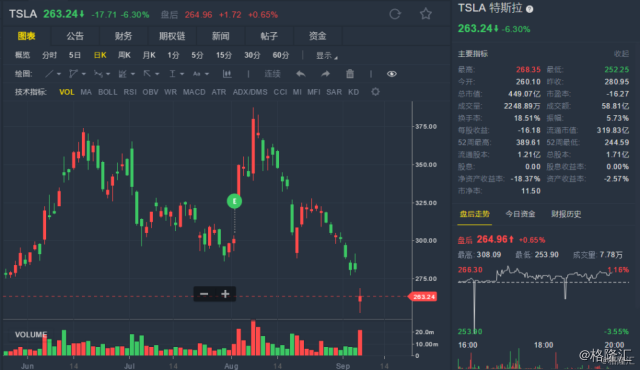 本周五,特斯拉股债双双重挫。最近公司CEO马斯克在直播中抽大麻引起争议,接着又传出公司高层人事巨震。特斯拉股价盘中一度跌破253美元,跌幅突破10%,创两年最大盘中跌幅,收盘跌幅收窄至6.3%,收报263.24美元,收创约五个月新低。比股价更严重的是债券问题,同在周五,特斯拉的融资成本创造了最高纪录。特斯拉2025年到期的债券价格跌至创纪录的82.03美分,较今年8月7日跌近12%,收益率由此逼近8.9%。