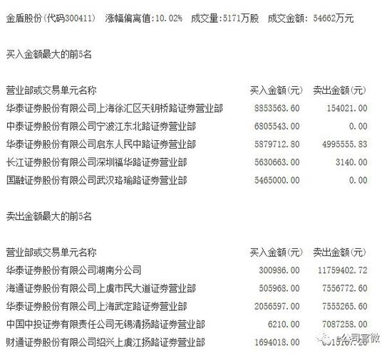 9月5日,买卖金盾股份金额前五名的营业部或交易单元名称,无机构专用席位参与其中。9月6日龙虎榜显示,斯太尔、凯瑞德、高斯贝尔、金盾股份买入卖出前五席位均为营业部游资,印纪传媒除深股通占据卖出一席外也都是营业部席位主导成交。