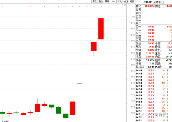 金鸿控股在8月30日至9月7日的7个交易日里收出6个涨停,区间涨幅近7成。其中多个交易日出现几分钟内便直线涨停的情形,股价异动明显。