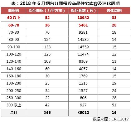 1、合肥、烟台库存压力集中在70平方米以下小户型