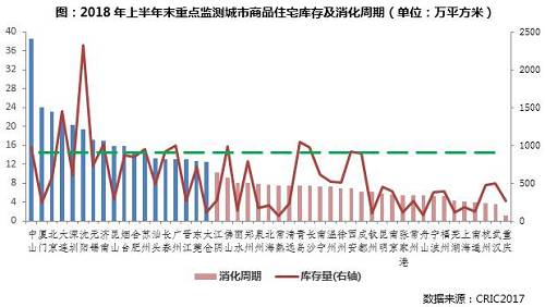 截止2018年6月,近三成城市库存量仍处低位,消化周期现已不足6个月。其中,重庆(楼盘)市场异常火热,消化周期低至1.2个月。与此同时,13个城市消化周期超12个月,除大连(楼盘)、沈阳、长春(楼盘)这类风险城市之外,不乏北京(楼盘)、深圳(楼盘)、厦门(楼盘)等核心一、二线城市,高库存风险有重启可能。