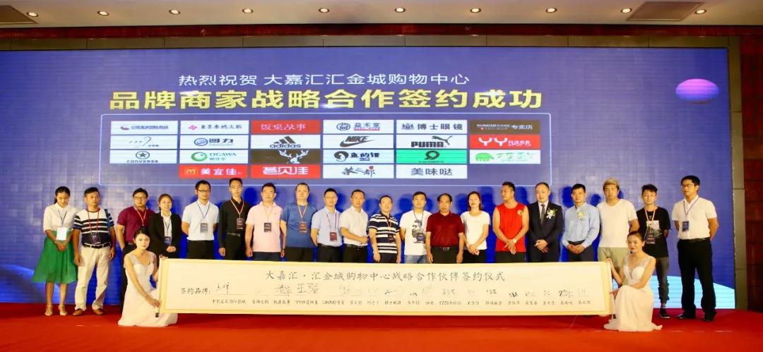 在峰会现场与会嘉宾的见证下,大嘉汇·汇金城购物中心与战略合作伙伴进行签约。签约品牌包括:中影星美国际影城、秦妈火锅、饭桌故事、YY胜道、24小时智能健身房LIKING、荟贝佳、巧手丫、博士眼镜、鱼的错、回力、1779全球购、斯诺威登、美宜佳、奥佳华、鹿角巷、益禾堂、美味哒、茶之都。