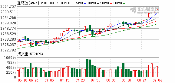 亚马逊周二收盘上涨1.3%,至每股2039.51美元,市值低于1万亿美元。